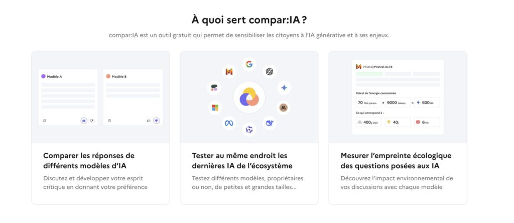 Le site Compar:IA est gratuit, accessible sans création de compte et répond à plusieurs enjeux :