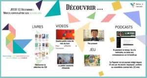 Pour que tous les élèves soient sensibilisés, nous avons aussi choisi de leur proposer, chaque jour, un ensemble de ressources (vidéos, articles, jeux…) permettant à chacun de réfléchir de manière autonome aux thématiques abordées.
